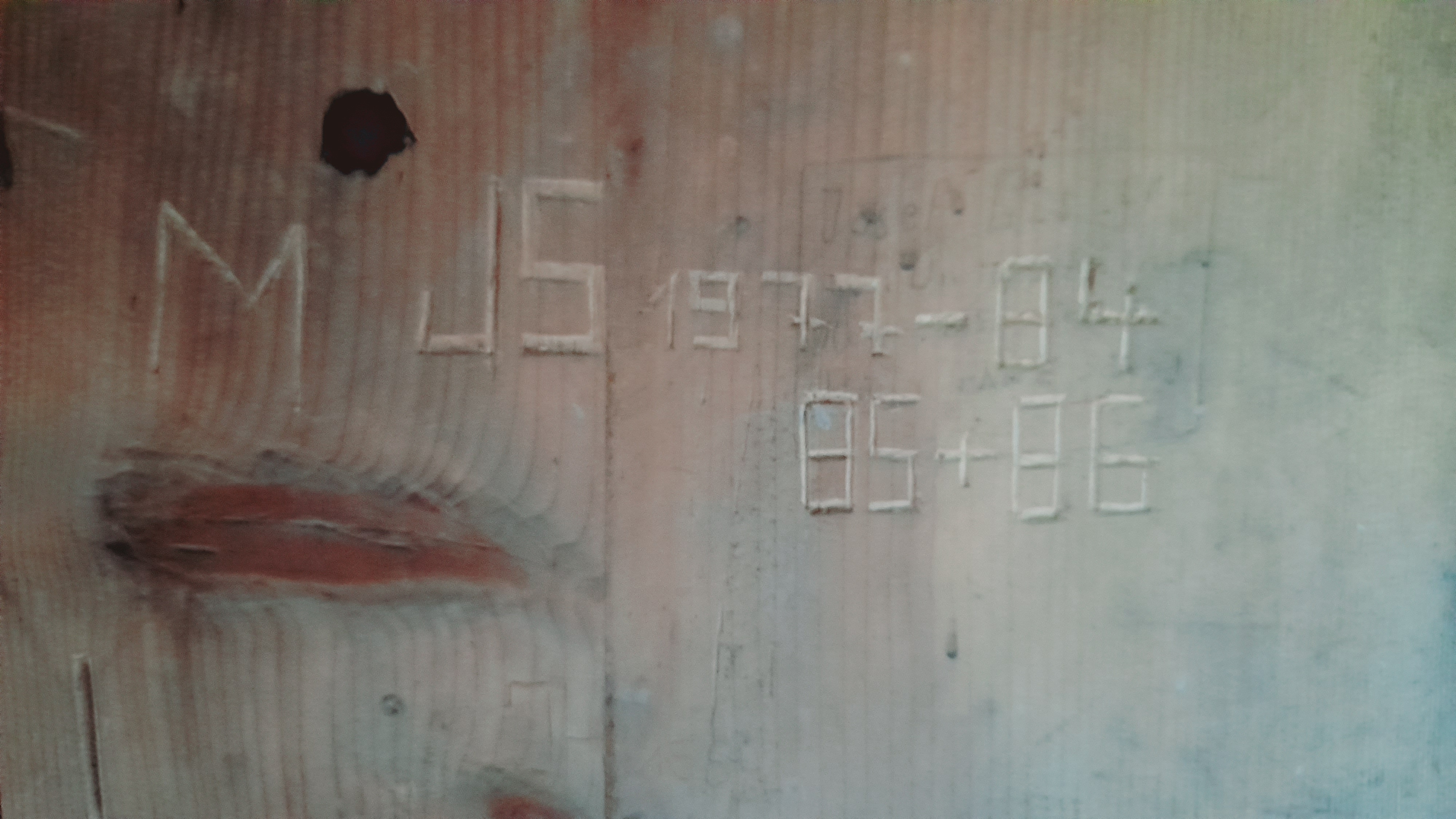 Eingeritzte Insignien der Leute, welche auf Chamm gealpnet haben.